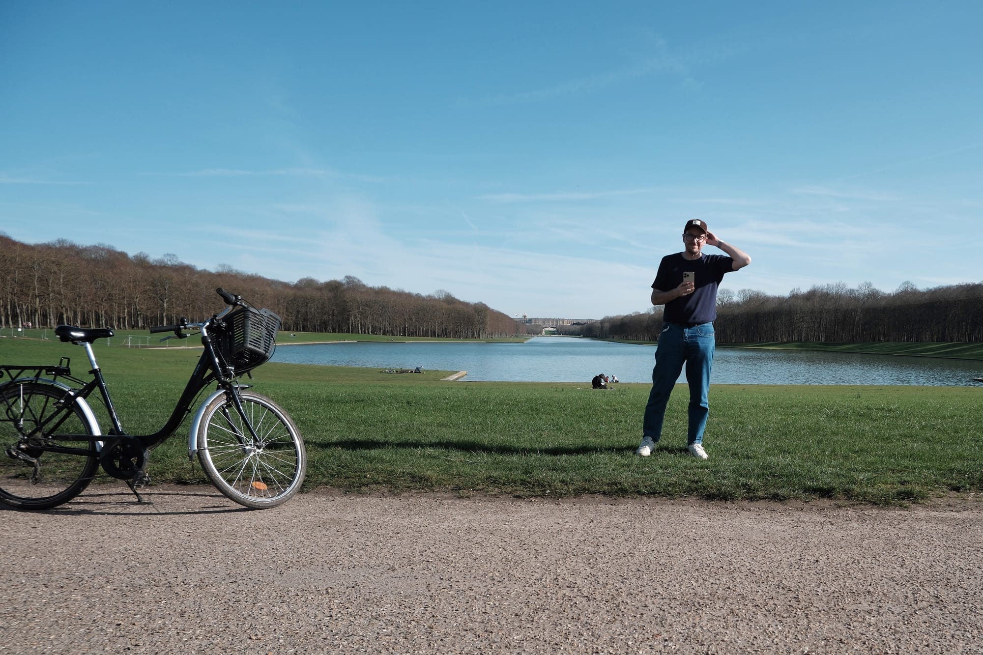 I avoided the Petit Trianon – another, yet smaller, Trianon gifted to Marie Antoinette to complete the set of nesting doll châteaux – and whooshed along a still half-mud track called L'allée du Rendez-Vous, behind the life-sized little village that Marie Antoinette also kept as a sort of plaything and behind the gardener's house and then hooked left to follow L'allée des Hâ-Hâ (ha!) all the way until it crossed L'allée de Fontenay which I took, jutting off diagonally to the right again into the farthest reaches of the gardens, eventually making it just beyond the tumescence of the grand canal gleaming all the way back to the palace in the distance.