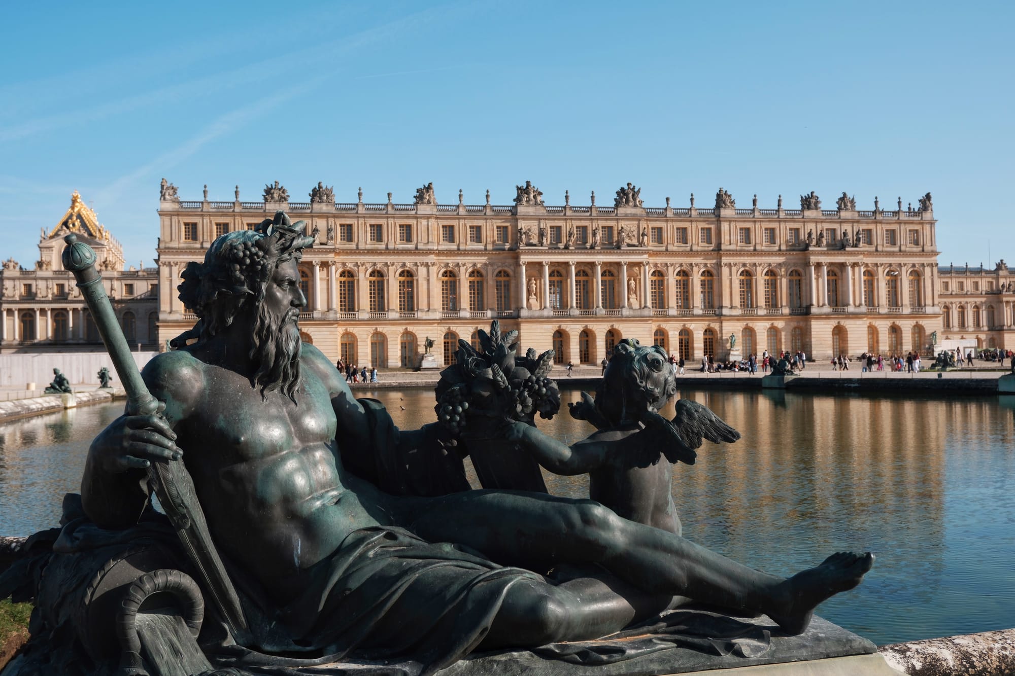 For an off-season sojourn, Versailles was of course still busy. The 221-odd statues in the gardens remained wrapped to protect them against the depths of winter but this was a proto-spring day and the crowds, like me, were drawn to this 800ha retreat to cast off the shackles of a long winter. (I walked past a man on the street the other day, standing in a thin wedge of sunlight. His eyes were closed and his face tilted to the sun, utterly motionless, like a lizard or this lemur I saw on Instagram).