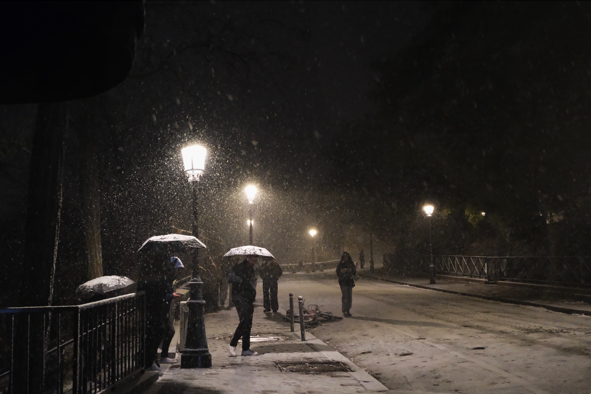 It does not snow much in Paris, I am told, and if it does it rarely stays on the ground. In some sense I had internalised this frequent warning, delivered as if by some Tolkien-esque wizard advising the realpolitik of Middle Earth, and went out wandering for several hours into the early morning as it just kept snowing and snowing. By the time I'd realised how much snow was falling I had climbed to the very height of the butte beneath the Sacre Cœur and it was driving sideways, like my first car with the perpetually misaligned steering wheel.