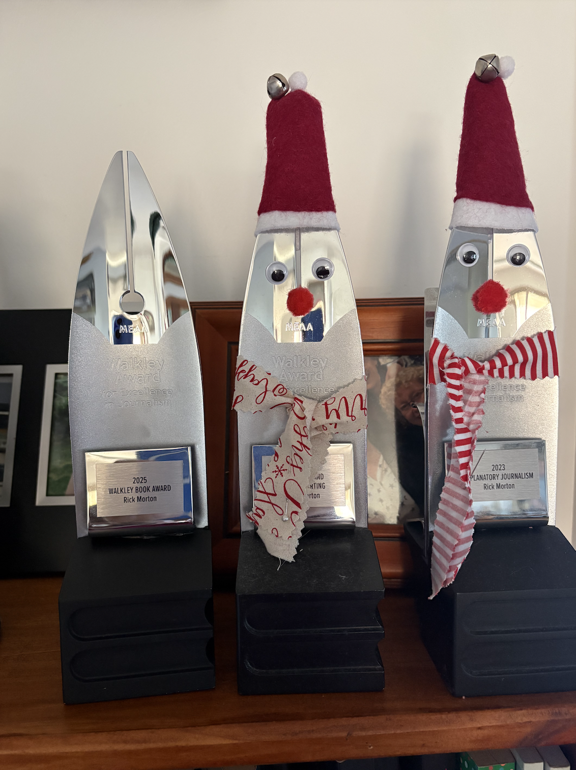 Mum received the Walkley statue in the mail the other week and clearly hasn't had time to make a Christmas outfit for it yet. I'll leave you with that.