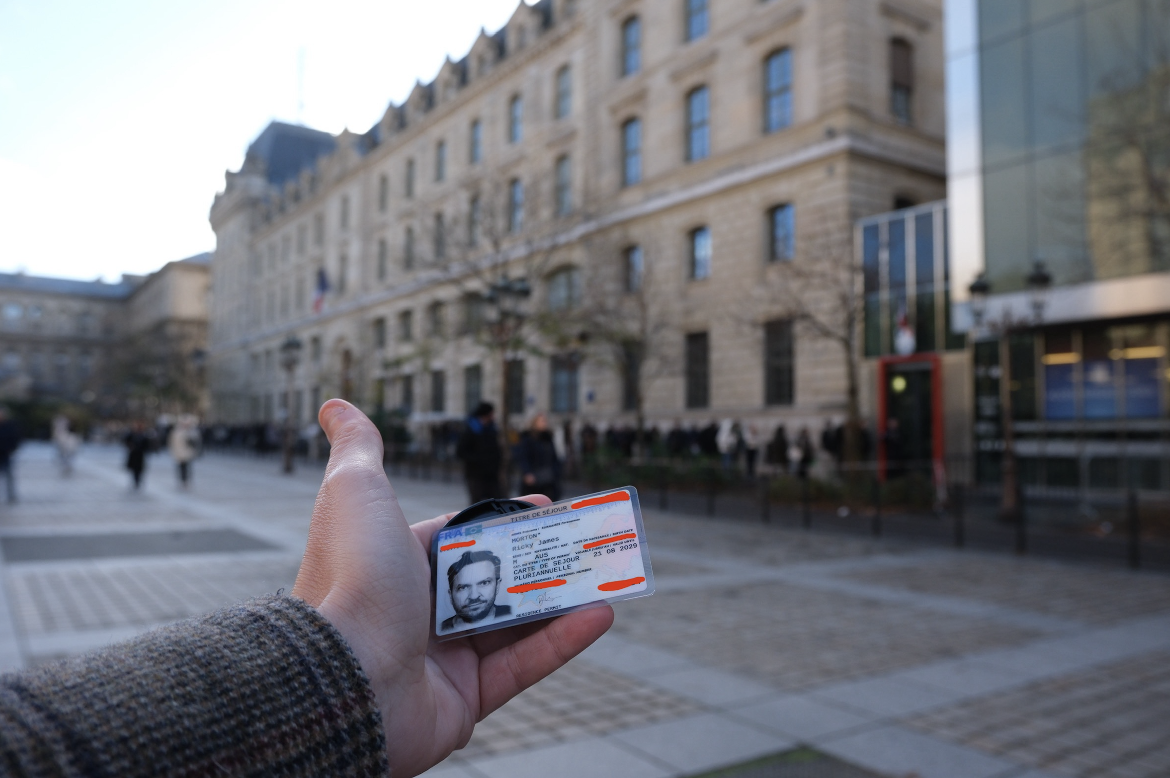 Three days after I emailed the French authorities, with no response from the prefecture, a separate message came through for me: my residence permit was ready to collect. Wonderful news, except they seem to tell everyone, all at once, to come to the prefecture for sport. I think they do administrative theatre the way they speak their own language; just fucken run it all together and let people figure it out. Our queue eventually stretched along the entire length of the very large neo-Florentine Prefecture de Police building on the little island in the Seine, Île de la Cité and then around the corner.