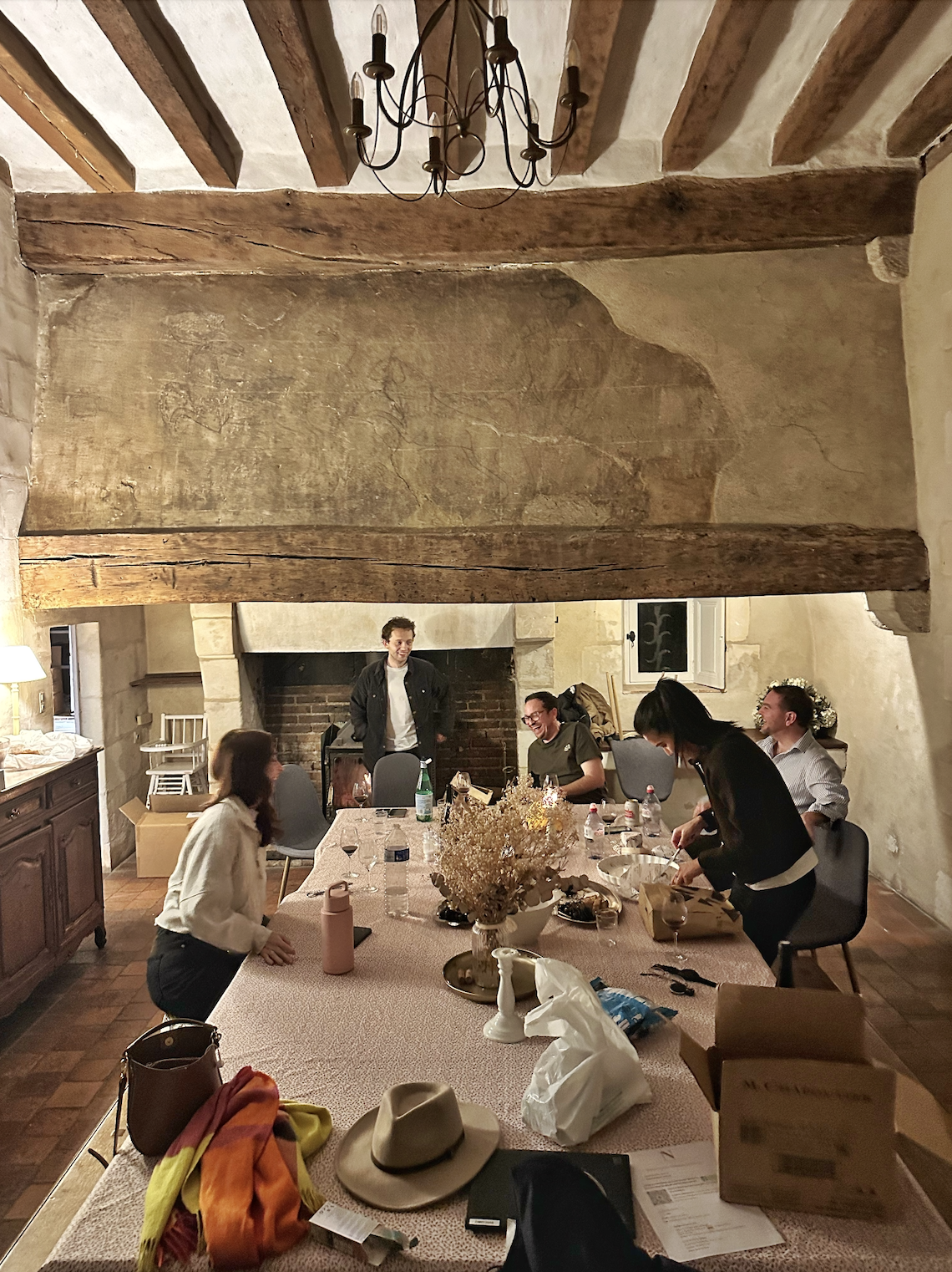The MRI had to wait, however, because I was going away that Friday to spend the weekend in the Loire Valley at a 16th century hunting lodge attached to a château not far from the town Azay-sur-Cher for my friend Cordell's birthday. We drove down with fresh produce and delicious wine and arrived just after dark where I immediately set to work chopping what felt like the entire seasonal yield of L'Indre-et-Loire's mushroom crop. There were 13 of us in total – one couple caught four trains from Brussels – and the lodge became a toasty den of food and celebration. A fire crackled beneath a large fresco, also dating to the 1500s, of what we decided was a man being indecent with a dog.