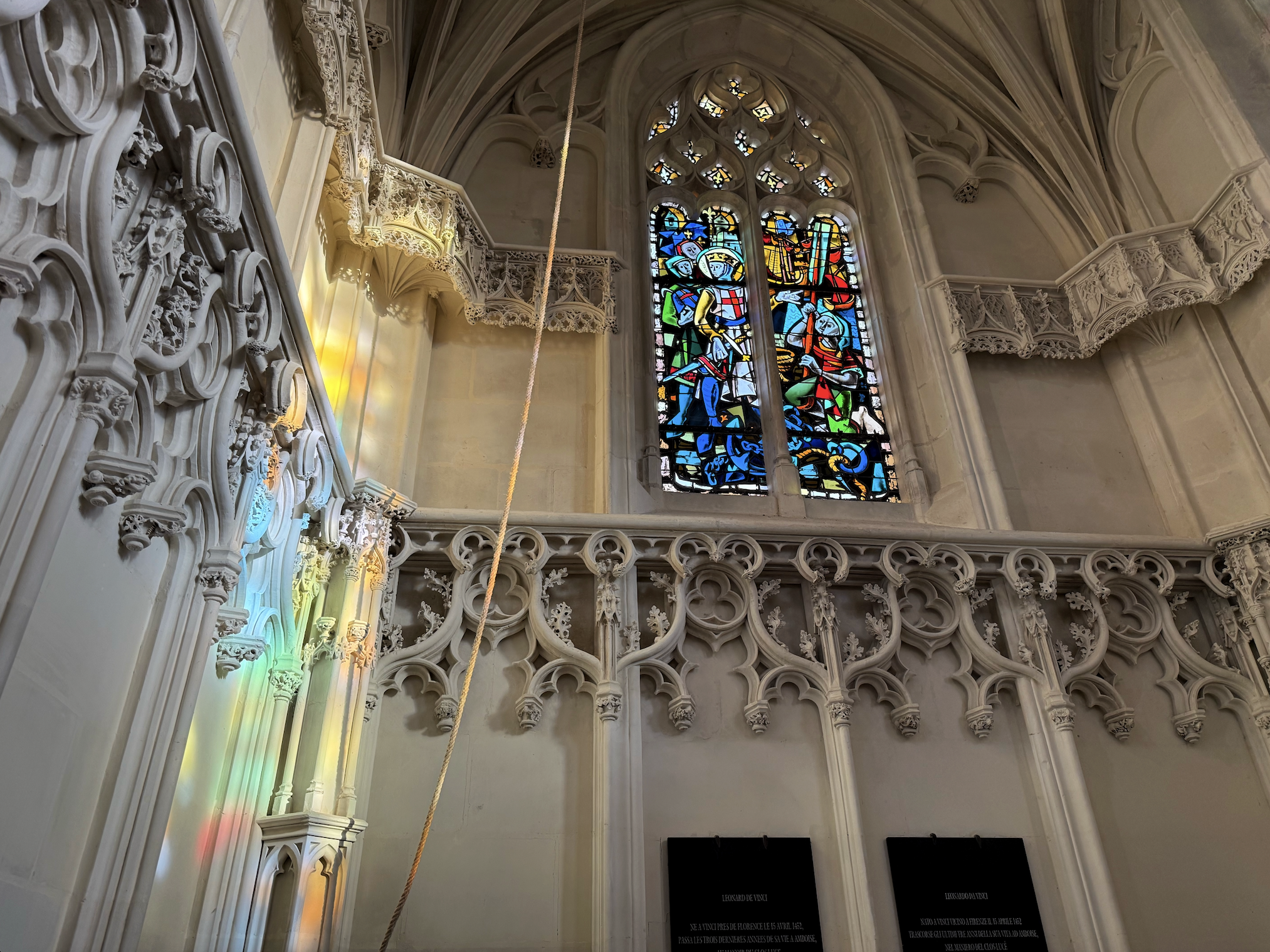 This is why the Mona Lisa hangs in the Louvre and not in the famed institutions of Florence and the Italians have been upset about it ever since. And it is why da Vinci lies at rest in the castle chapel, his tomb guarded by the stained glass windows of a jewel that has stood since 1492. Not a single thing adorns it – a missed opportunity for an interactive conical helicopter contraption, if you ask me – but the tiny gothic prayer house itself juts out from a cliff, clings to it, even, above the town of Ambroise so as to give the entire spectacle the air of one of his inventions.