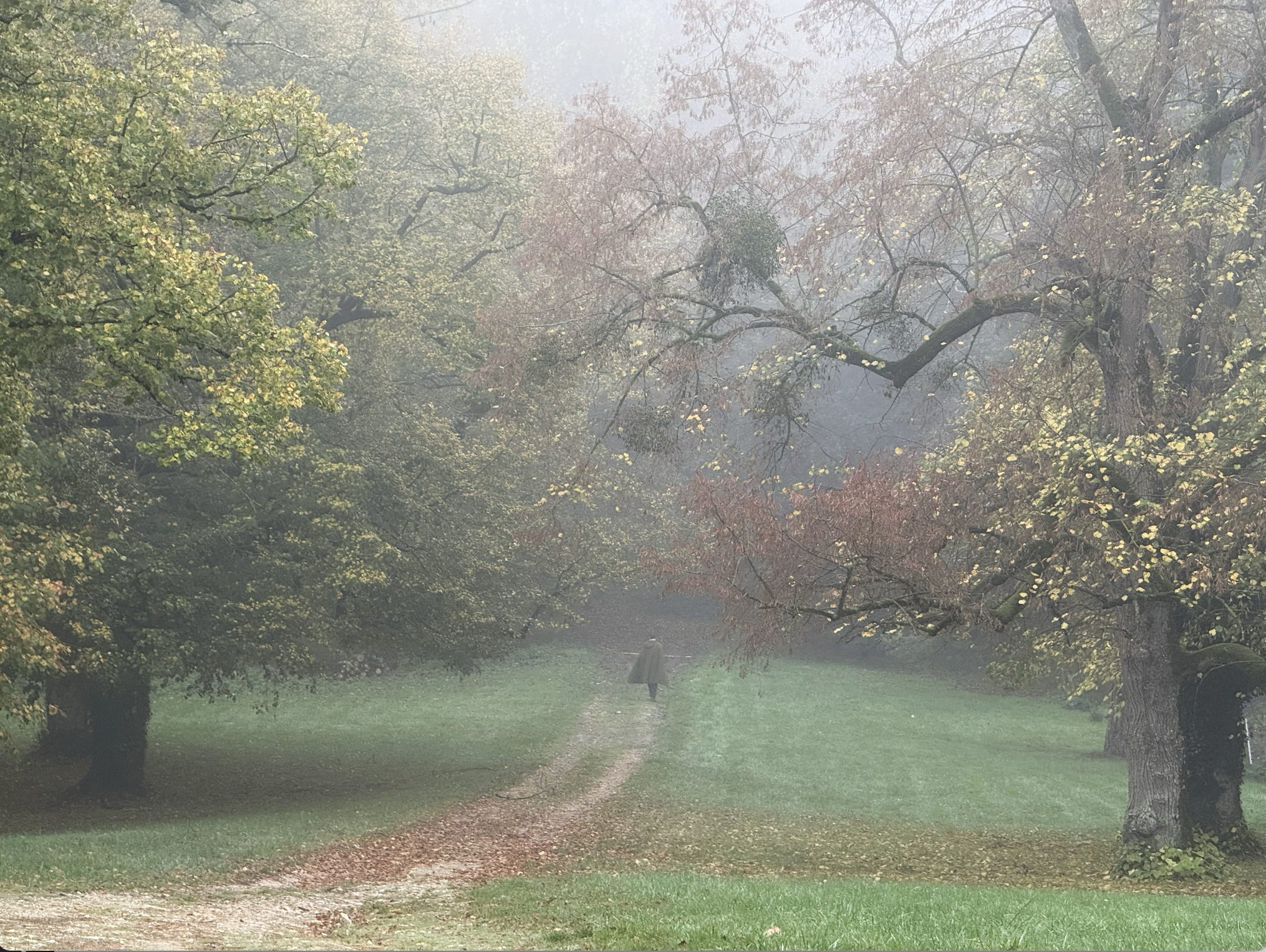 If you see one of anything, there are more you don't see. In the morning, the fog was thick. It was colder than the day before. I went outside to feel the air and watched as a lone man in a cape strode off into the distance, into the fog; into the wood.