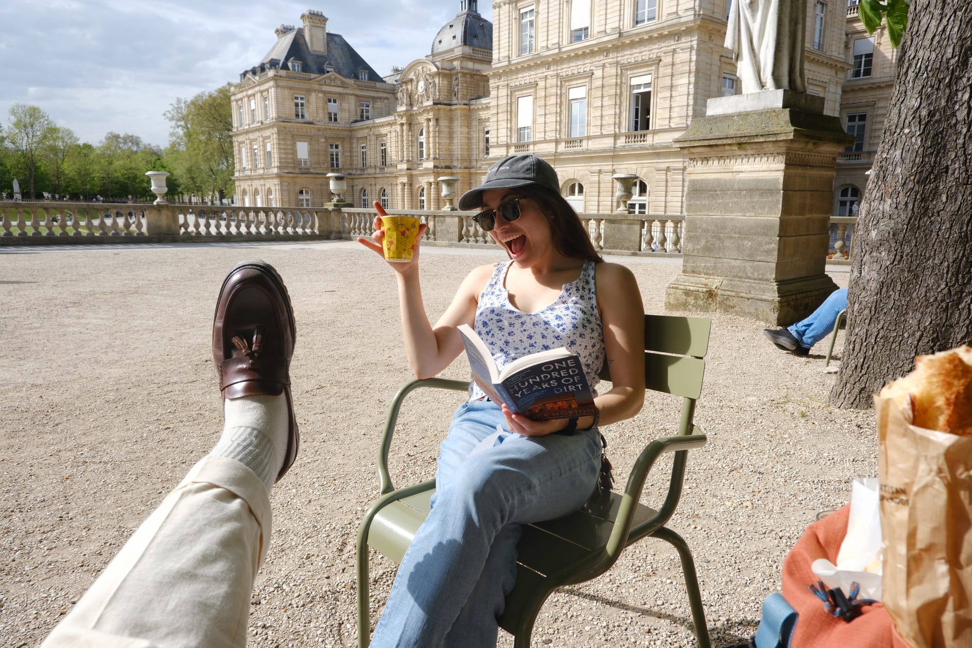 At any rate, we love J and a few days later we moved from the canal to the Jardins du Luxembourg as the temperature was due to hit a whopping 25C. Cafe manager V rode her eBike to find a spot and I caught the M12 line. Ella joined us shortly after her shift had finished although she caught the bus, a mode of transport I will never understand or endorse. I brought supplies, again.