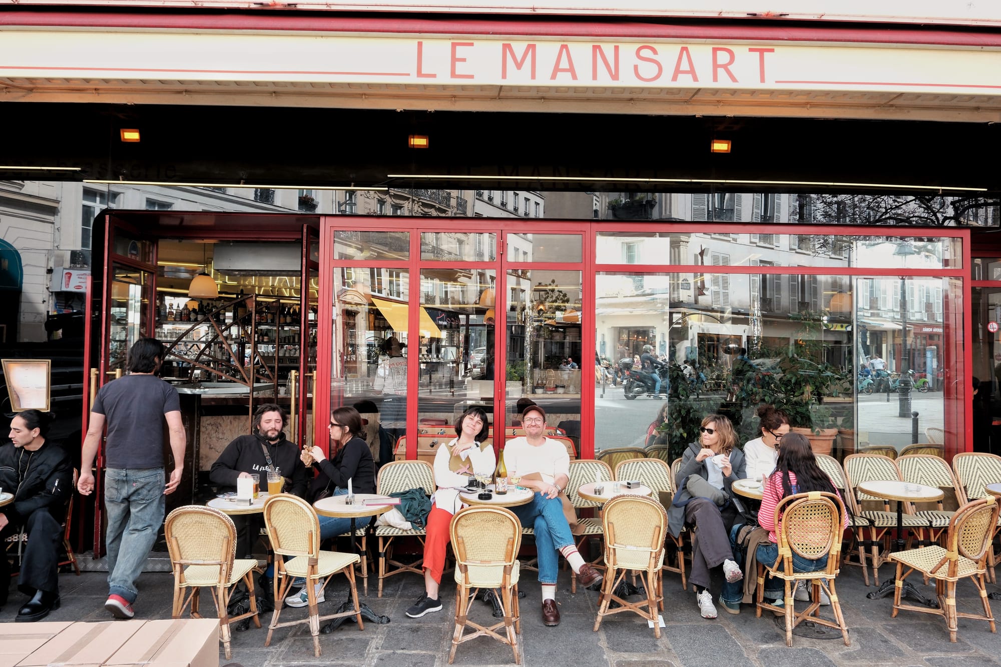 Friday I had a lunch booked with an Australian friend JuJu who works in Paris and his friend Polly, who was visiting, and although the former had threatened a long and liquidated afternoon I had decided, incorrectly it turns out, to genuflect at the altar of moderation. Lunch turned into a nine-hour affair: nice wine, cheap wine and then campari spritzes. Perhaps it was the residual warmth of the week but I was quickly convinced that now, finally, I could take myself and my friends to a bistro called Le Mansart in the 9th arrondissement which I walk by every day on the way to the gym. And every day I walk by Le Mansart the outdoor terrasse is filled with the most impossibly beautiful and eclectic mix of people. Models, chic elder parisians, influencers and people of indeterminate age and indeterminate means. They are dressed, collectively and apart, in fashions ranging from street grunge to high-art and the outdoor tables catch the afternoon sun and a passing parade of yet more terrifically appointed locals. In a city more or less built on the organising principle of social observation I truly believe there are few better places to do it than on this delightful corner of the ninth. And, finally, it was my turn, emboldened by a Jura chardonnay and the bravado of my friends.