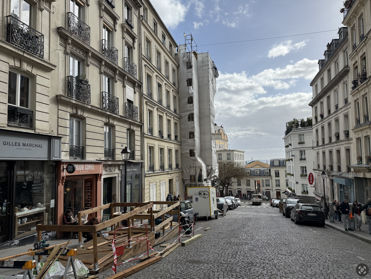 On April 1, as is now custom since Covid measures to boost the service industry, bars and bistros across Paris began constructing their additional outdoor terrasse spaces. Even those who always have outdoor seating manage to expand on to the streets, reclaiming car and motorcycle parking spaces for the greater good (drinking in the sun). I arrived last year when these pine, semi-permanent additions to the city had already been built for the season and watching them be dismantled on November 1 felt like like witnessing an entire city inhale; shrinking itself for the winter ahead. Now, I can see the phenomenon in reverse.